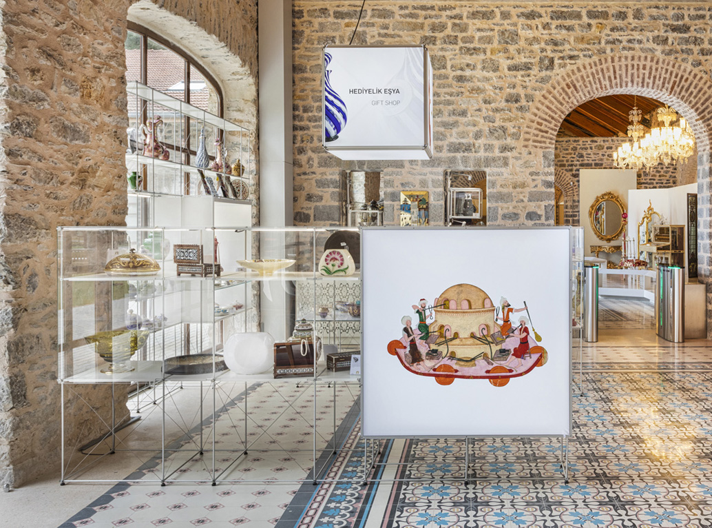 Mit seiner leichten Aluminiumstruktur, den beleuchteten Oberflächen und den versteckten LED-Regalen wurde das Clic-System bevorzugt, da es sich in einem alten Museumsgebäude verstecken und so die beste Präsentationsqualität erzielen lässt.