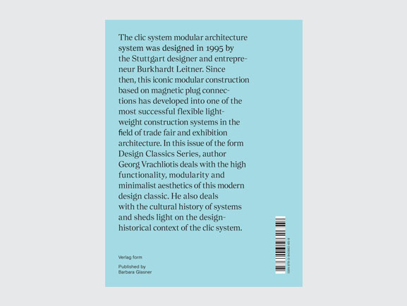 Im Verlag form erscheint zur diesjährigen internationalen Frankfurter Buchmesse (16. bis 20.10.2019) die neue Ausgabe der Reihe form Designklassiker: "Clic System von Burkhardt Leitner Modular Spaces".
